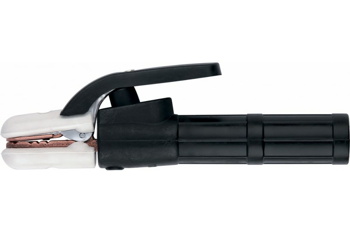 Держатель электродов Сибртех 91455 совместим со сварочными аппаратами с силой тока до 500 A. Используется для удержания электрода в нужном положении и подведения к нему тока в процессе сварочных работ. Работает с электродами диаметром до 10 мм. Преимущества: Надежная фиксация — держатель пружинного типа обладает большой прижимной силой и крепко удерживает электрод.Безопасность — ручка изготовлена из пластмассы с повышенными электроизоляционными свойствами.Вес 298 г — даже длительная работа с электрододержателем не вызывает усталость.