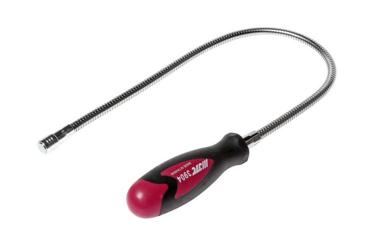 Гибкий магнитный держатель JTC 3904 с эргономичной рукояткой очень удобен в использовании. Он позволяет извлекать из труднодоступных мест разные детали. Наконечник оснащен магнитом, поэтому он легко притягивает небольшие металлические предметы. Мощность магнита составляет 1600 гр. Габаритные размеры: 370х150х20 мм.