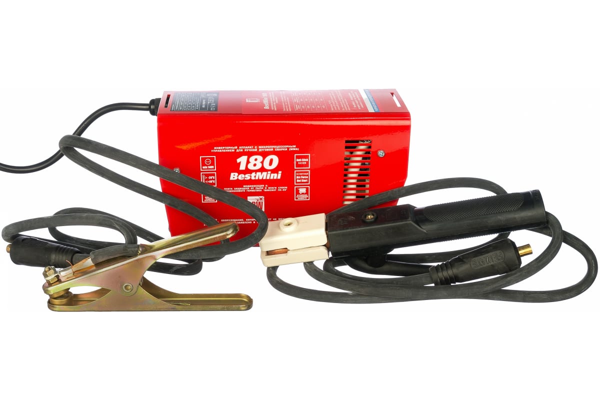 Инверторный сварочный аппарат BestWeld Mini 180 BW1180 оснащается микропроцессорным блоком управления. Диапазон сварочного тока устройства составляет от 10 А до 180 А, что позволяет варить электродом с минимальным диаметром. При напряжении от 180 В модель работает электродами УОНИ, а при напряжении от 140 В - электродами АНО-21 и МР-3. Агрегат широко используется на даче, в подсобном хозяйстве, на строительной площадке.