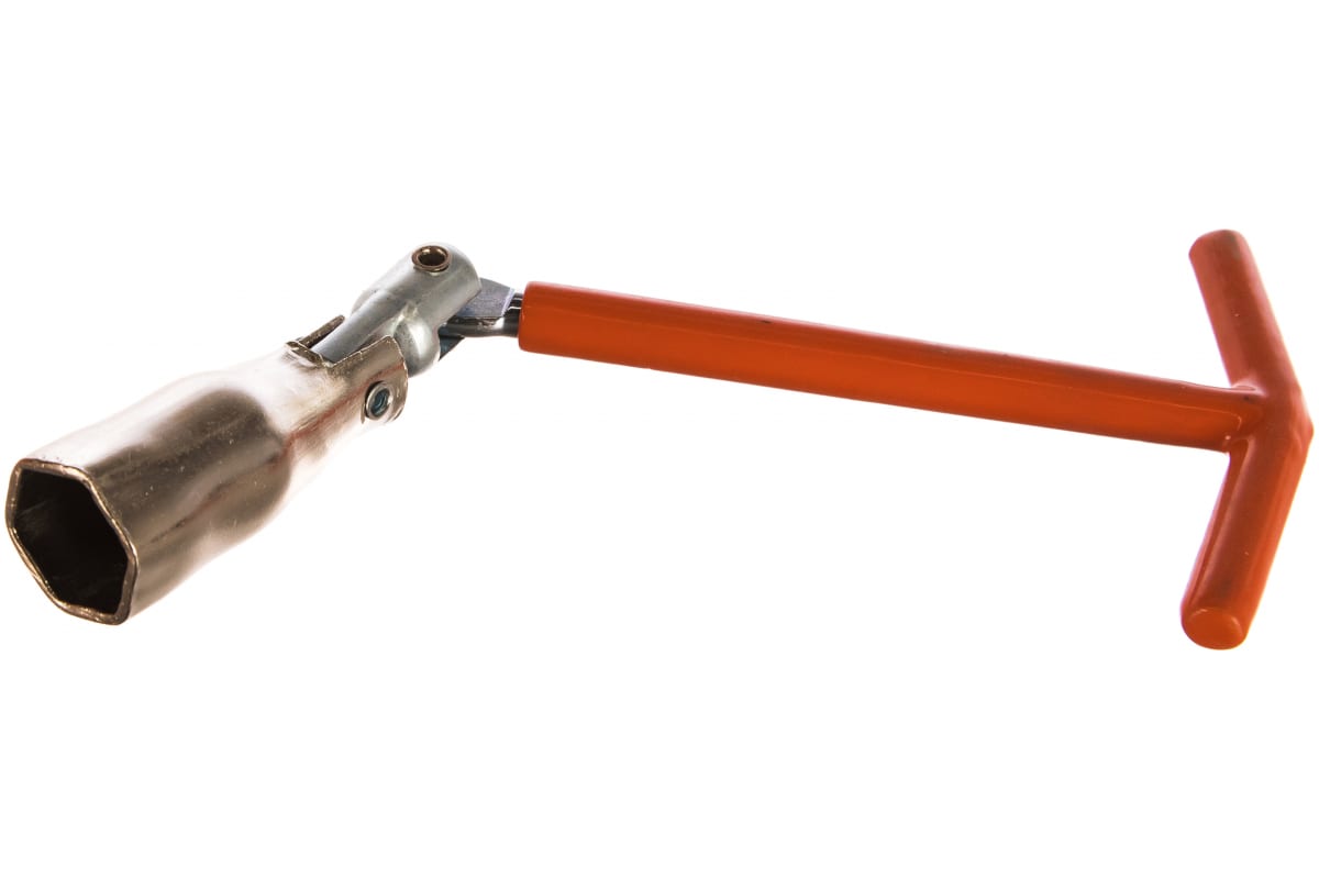 Свечной ключ с шарниром Sparta 138405, 21 мм, предназначен для замены автомобильных свечей зажигания. Он пригодится автолюбителям для самостоятельного ремонта авто и работникам СТО. Ключ легко проникает в труднодоступные места благодаря наличию двойного шарнира. Свеча не выпадает из ключа за счет встроенного резинового кольца. Преимущества: Ключ изготовлен из углеродистой стали 45, которая обеспечивает его прочность и стойкость к механическим нагрузкам.Двойной шарнир позволяет менять угол наклона ключа и увеличивать плечо вращения при необходимости.Защитное цинковое покрытие предотвращает появление ржавчины на поверхности ключа.Т-образная рукоятка удобно ложится в руку и повышает комфорт работы.