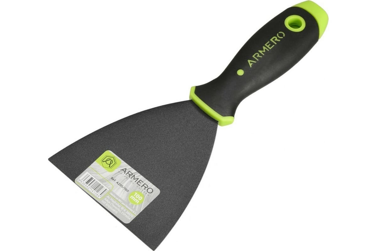 Малярный шпатель тефлон 100 мм ARMERO A205/100 оснащен мягкой рукояткой, которая хорошо ложится в ладонь.Стальное полотно покрыто тефлоном - это исключает налипание влажного материала.