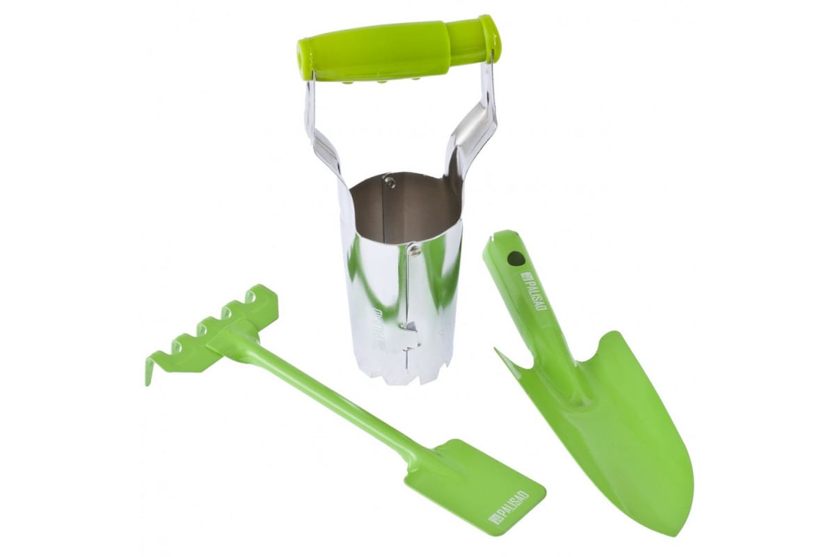 Набор цельнометаллических садовых инструментов Palisad FRESH LINE 64490 состоит из 3 предметов, предназначенных для вскапывания и рыхления почвы, а также формирования лунок для посадки растений. Мерная шкала на корпусе посадочного конуса позволяет создавать лунки определенной глубины. Грабли и совок целиком выполнены из металла, поэтому выдерживают длительное использование. Верхняя часть грабель выполнена в форме лопатки, что расширяет возможности применения инструмента. Набор пригодится для ухода за растительностью на дачном участке. Преимущества: Высокий показатель прочности — все элементы набора изготовлены из среднеуглеродистой стали.Защита от коррозии — грабли и совок покрыты порошковой эмалью, а корпус посадочного конуса оцинкован.Надежность — грабли усилены ребрами жесткости на зубьях, а корпус конуса скреплен заклепками.Комфорт во время работы — конус имеет удобную раздвижную пластиковую ручку.Удобство хранения — в рукоятке совка имеется отверстие для подвешивания.