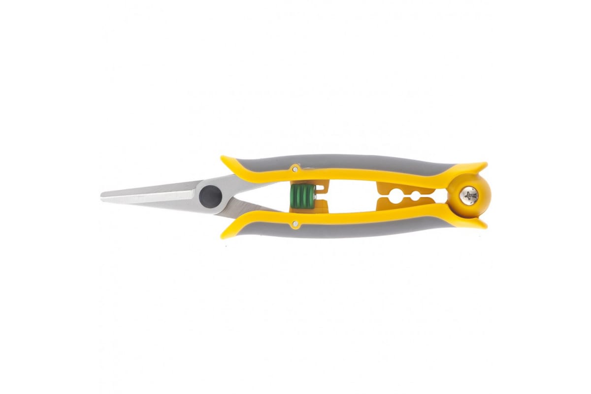 Ножницы Palisad Luxe 60497 используются для обрезки бонсай и создания топиариев. Срезают молодые ветки и цветочные стебли диаметром до 10 мм, а также способны резать бумагу, картон, ткань, подвязочную проволоку. Лезвия ножниц расположены в параллельных плоскостях, что обеспечивает точный и аккуратный срез. Плотность смыкания лезвий регулируется при помощи винта. Преимущества: Прочность и износостойкость — лезвия изготовлены из среднеуглеродистой стали, прошедшей индукционную закалку. Высокий ресурс — рабочие кромки с прецизионной заточкой долго сохраняют режущую способность. Защита от коррозии — рабочие поверхности хромированы. Долговечность — рукоятки, выполненные из полиамида с термопластичными вставками, устойчивы к перепадам температур и воздействию ультрафиолета. Надежность — демпфер между рукоятками предохраняет их от поломки. Безопасное хранение и транспортировка — фиксатор надежно удерживает лезвия в сомкнутом положении.