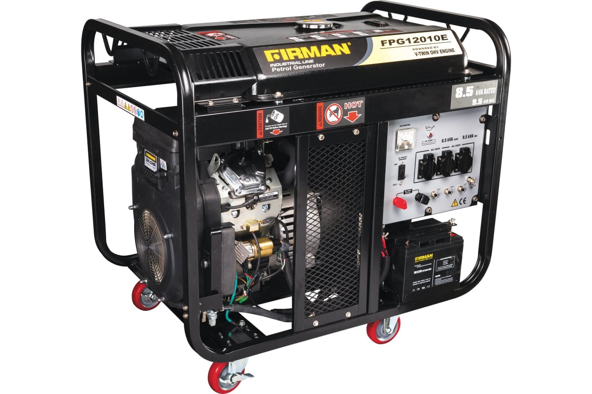 Передвижная бензиновая электростанция FIRMAN FPG12010E используется на строительных и производственных площадках в качестве универсального источника электроснабжения. Модель оснащена двухцилиндровым двигателем с воздушным охлаждением FIRMAN 278FDE-A1. Благодаря электростартеру запуск устройства осуществляется легко и быстро даже в зимний период. На панели управления располагается терминал переменного тока, который служит для снятия полной нагрузки с одной точки.