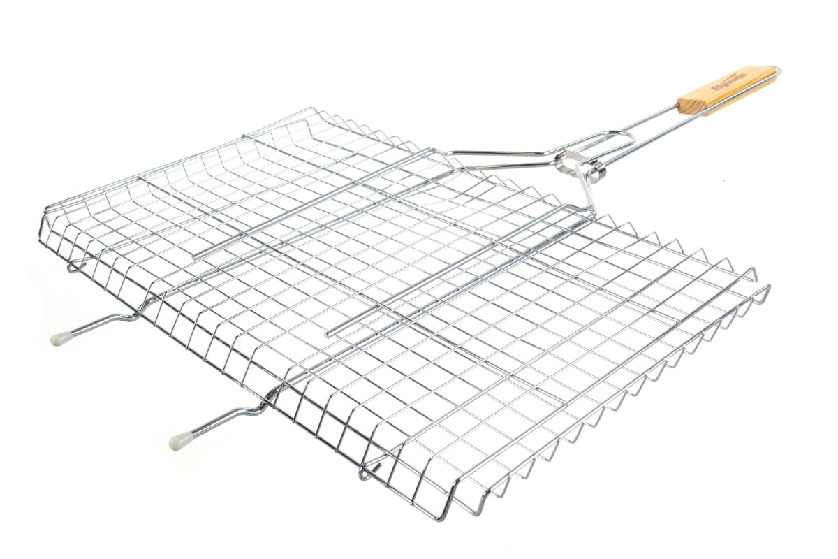 Хромированная решетка-гриль Sparta 69565 размером 260 х 450 мм будет полезна для любителей блюд, приготовленных на углях. С ее помощью можно качественно и равномерно пожарить мясо, овощи, птицу и рыбу, поэтому они получаются вкусными и сочными.ПреимуществаДолговечность и надежность решетки достигается за счет качественного материала изготовления — жаропрочной пищевой стали с хромовым покрытием.Рукоятка из древесины удобно лежит в руках и приятна на ощупь.Решетка имеет увеличенные опорные стержни, благодаря чему она надежно фиксируется на мангале, а рабочая поверхность при этом используется полностью.