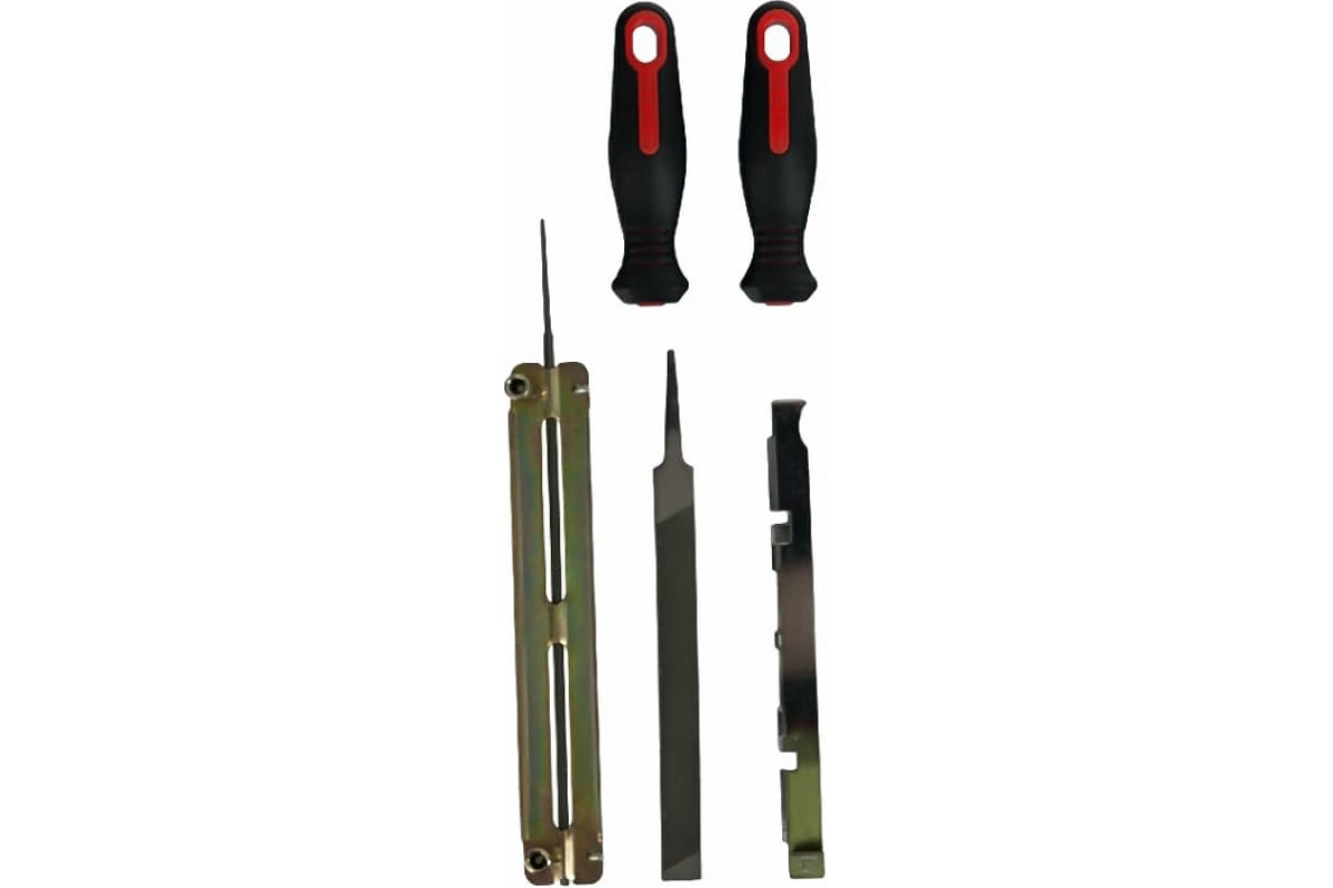 Заточной набор DDE 648-229 включает в себя все необходимое для профессиональной заточки цепи бензопилы, не снимая ее с самой пилы. Данный набор подходит для заточки цепи с шагом 0.325". Заточной набор включает в себя плоский напильник для стачивания ограничителя глубины, круглый напильник + 2 ручки, державка с линиями, которые показывают углы заточки, шаблон, который служит для правки и соблюдения параметров.